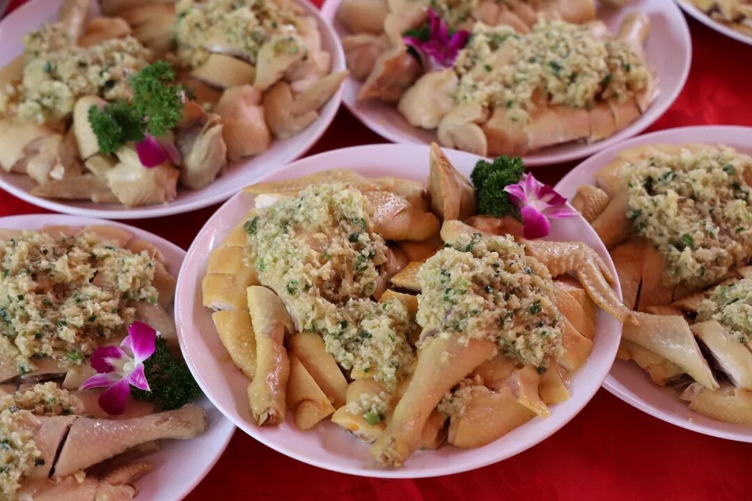 △铺满姜和蒜蓉的白切鸡。(图/视觉中国)